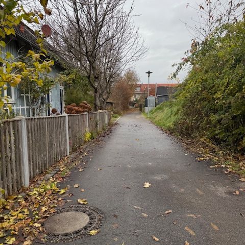 Den Gehweg beim blauen Haus entlang - dem Verlauf folgen - an den Gärten vorbei - links halten. Am Eckhaus links auf Hausnummer 21.