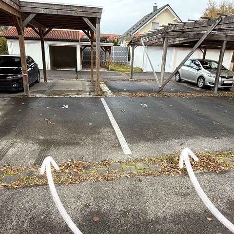 Bitte auf dem ausgezeichneten Stellplatz Nr. 21 parken oder gerne auf einem der freien Stellplätze mit der Nr. 3 zwischen den überdachten Carports nähe Garagen.